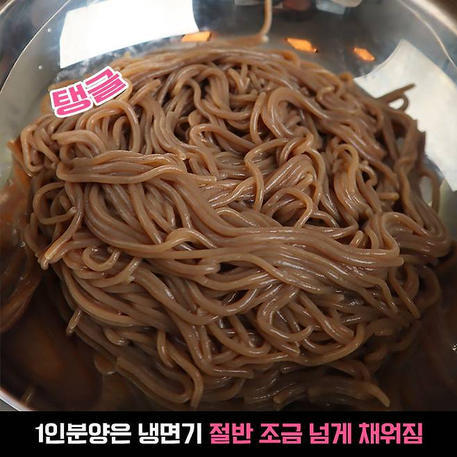 딱 1인분만 삶아 냉면 그릇에 담아놓은 모습인데요, 일반 크기의 냉면기 기준 넓게 펼쳤을 때 높이가 절반 조금 넘게 올라왔어요. 양은 1인분으로 충분할듯해요.