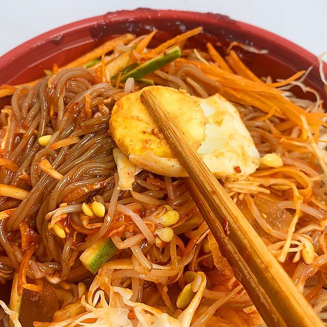 채소를 듬뿍 올려주었는데 양념장 용량이 넉넉한 편이라 한 팩으로 채소까지 모두 비비실 수 있어요! A ㅏ...막국수& 숯불닭갈비 조합 정말 간절해지네요ㅋㅋ