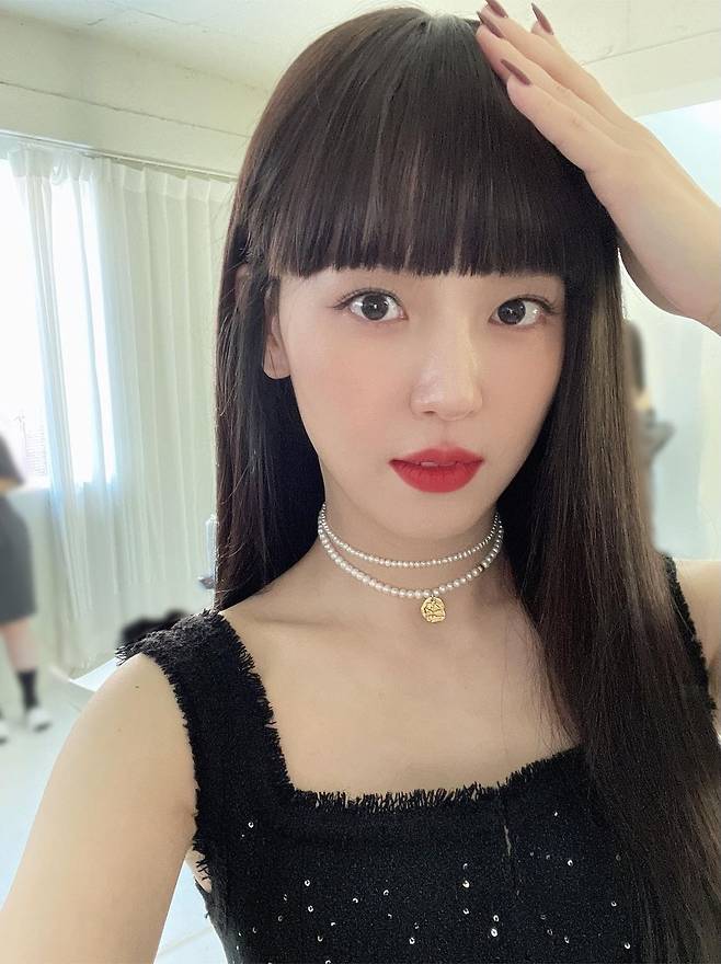 강한나는 뚜렷한 이목구비를 자랑하며 풀뱅스타일 앞머리까지 완벽하게 소화했는데요.