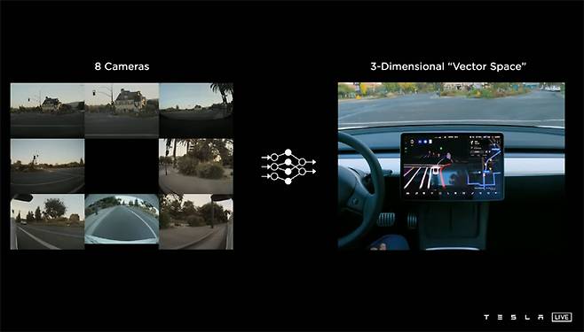 테슬라의 신경망은 주행 중에 만나는 시각적 정보를 처리하는 자동차 두뇌의 첫 번째 부분인 센서로부터의 정보가 보다 지능적으로 시스템으로 흘러 들어갈 수 있도록 광범위한 신경망 아키텍처와 함께 설계됐다고 한다. 이는 오토 파일럿의 시야를 막는 교차로의 자동차와 표지판의 표시 인식 문제를 해결하기 위한 것으로 보인다.