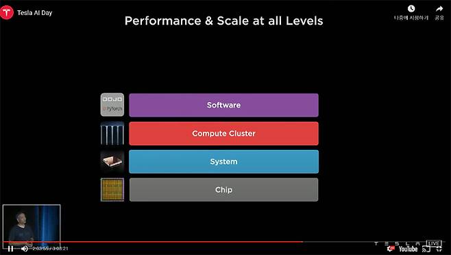 이 슈퍼 컴퓨터는 우선은 완전 자율주행을 구현하기 위한 것이며 더 나아가 새로운 분야에서의 적용도 계획하고 있는 것으로 보인다. 물론 이날 이벤트의 프리젠테이션에서는 완전자율주행(FSD)의 기술이기는 하지만 아직까지는 고급 운전자 보조 시스템이라는 것을 강조했다. 최근 미 고속도로교통안전국(NHTSA)의 조사 개시와 독일에서의 오토 파일럿과 FSD 등의 용어 사용을 금지했다는 것을 의식한 것으로 읽힌다.