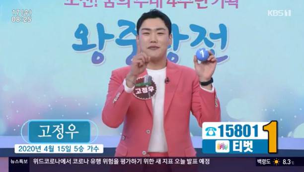 1번 고정우는 2020년 4월 15일 5승을 차지했다. 고정우는 "할머니를 따라 12살 때부터 물질을 했는데 고등학교 진학을 앞두고 할머니가 돌아가셨다. 생전 제가 트로트 가수를 하기를 바라셔서 그 꿈을 이루려고 한다"고 당찬 출사표를 던졌다. 이어 고정우는 "돌아오는 주가 할머니 기일이라 마음이 더 애틋하다"고 덧붙였다.