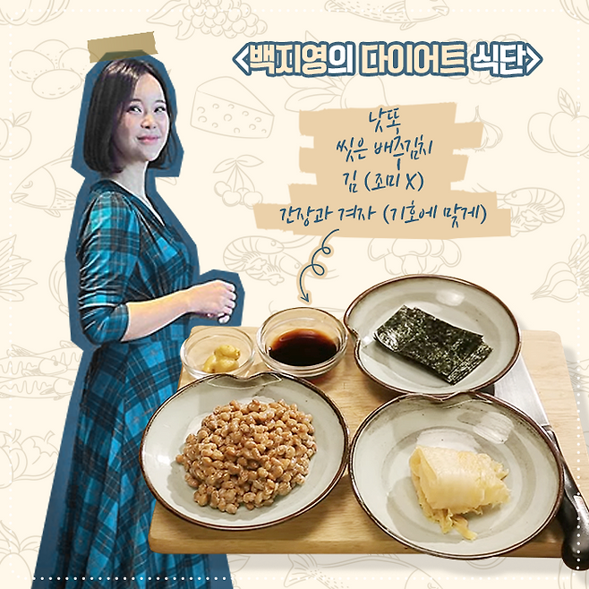 발라드의 황제 백지영, 백지영도 결혼 후 체중이 6kg까지 불어나 감량을 결심했다고 하는데요. 다이어트의 일등 공신이 '낫또'라고 말합니다. 과도한 채소 섭취로 인한 배변 문제를 해결하고, 장을 강화해 요요 현상을 방지해준 덕분이죠.