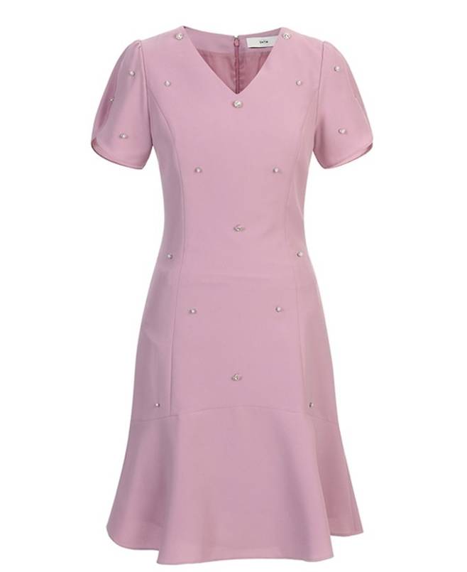 보석 장식 포인트와 A라인 실루엣으로 별다른 스타일링 없이도 갖춰 입은 느낌을 부여해 지적인 느낌의 격식있는 오피스룩, 하객패션, 데이트룩 등에 안성맞춤이다.