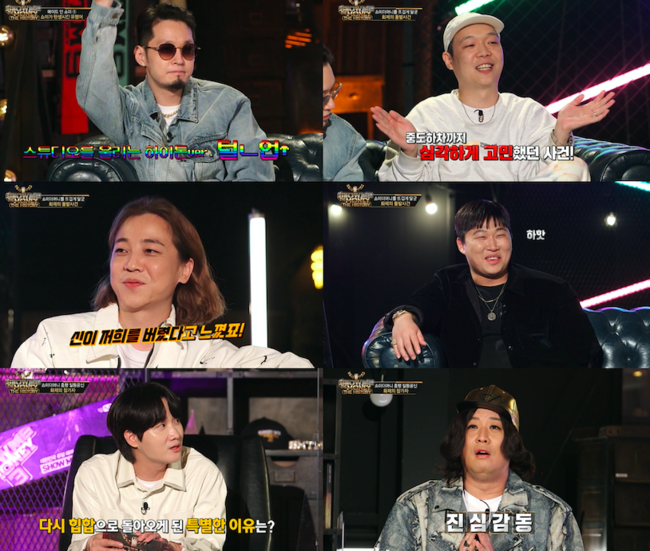 오늘 방송되는 '쇼미더머니 더 히스토리' 2회에서는 지난주에 이어 '쇼미더머니' 역대 프로듀서 더콰이엇, 팔로알토, 스윙스, 넉살이 출연, MC 이용진과 함께 거침없는 입담을 뽐낸다.