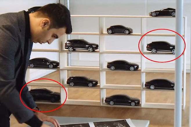 영상 속 한 장면은 스케일 모델 디자인 콘셉트로 가득한 선반을 배경으로 촬영됐는데, 영상을 본 사람들은 선반의 두 번째 줄 끝과 네 번째 모델에서 마치 쿠페 SUV처럼 보인다고 주장한 것이다. 만약 이 차량이 제네시스 GV80 쿠페라면, 이번 영상을 통해 제네시스 GV80 쿠페가 처음으로 일반 노출된 것이다.