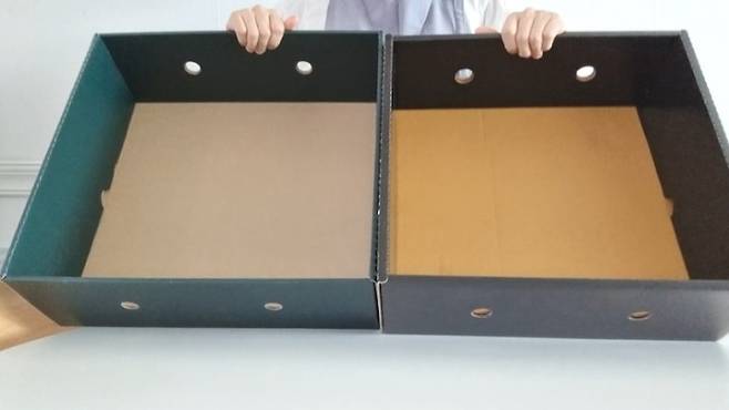 명절에 선물 받은 과일상자예요. 묵직한 과일이 담겨있던 거라 제법 튼튼하면서 크고 깊이감이 있어 정리와 수납에 활용해 보려고 해요.