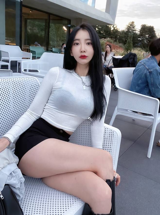 화이트 크롭 슬림티에 라인이 붙는 블랙 숏팬츠와