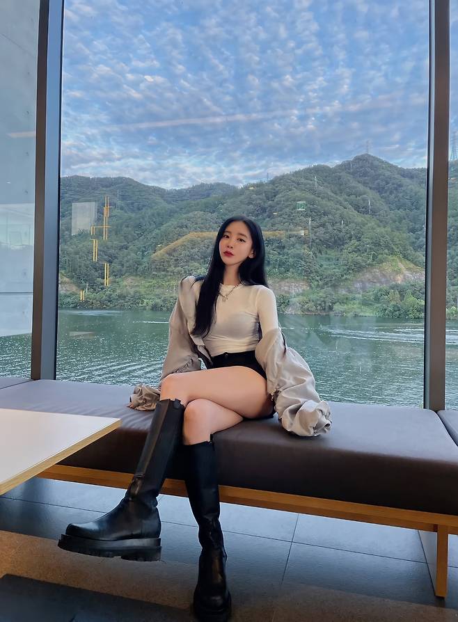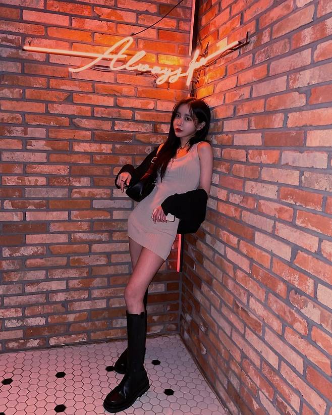 이너로 입은 상 하의를 블랙 부츠에 맞게