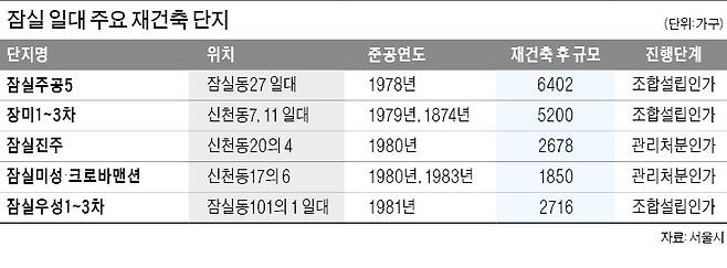 잠실동과 신천동 일대에선 향후 재건축을 통해 1만9000여 가구가 공급될 예정이다. 전문가들은 “재건축 사업이 다시 시작됐다는 것 자체가 고무적”이라며 “다만 가격 상승, 조합 갈등 등 변수를 잘 지켜봐야 할 것”이라고 말했다.
