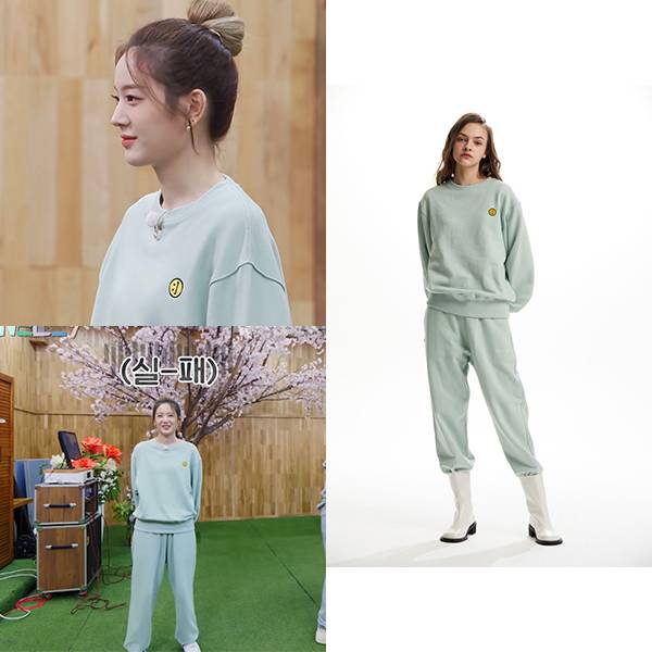 장규리가 착용한 제품은 '문수권세컨'의 스웨트 셔츠와 팬츠입니다.