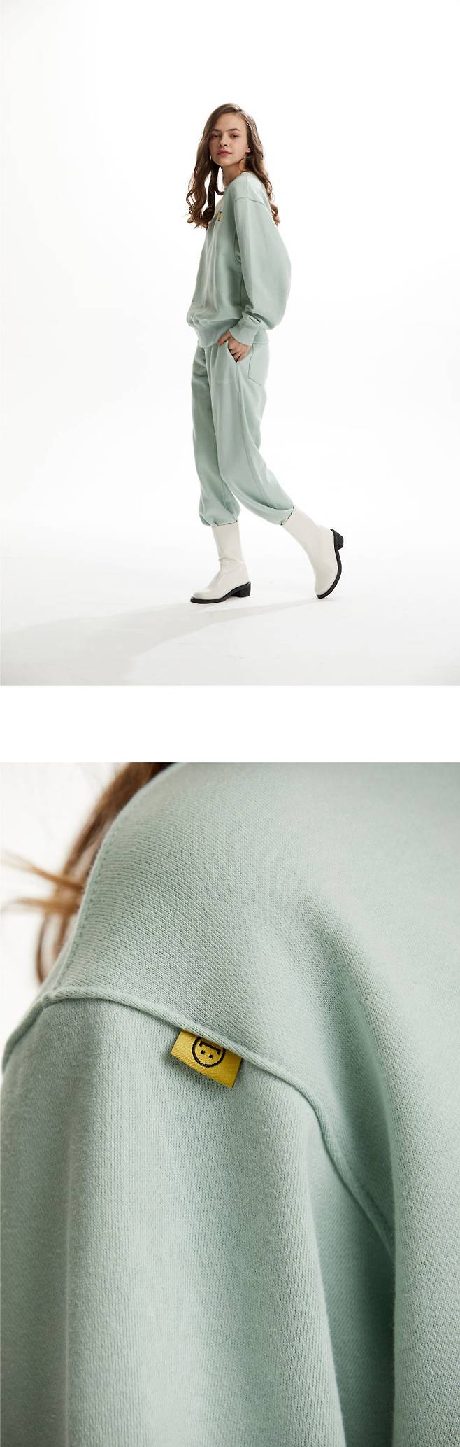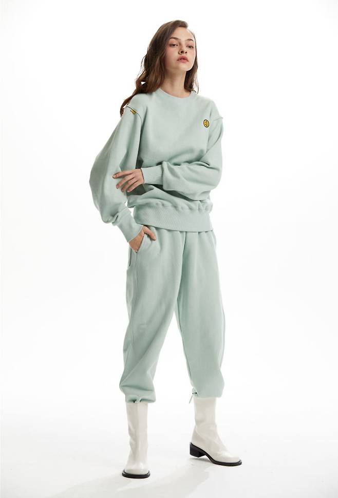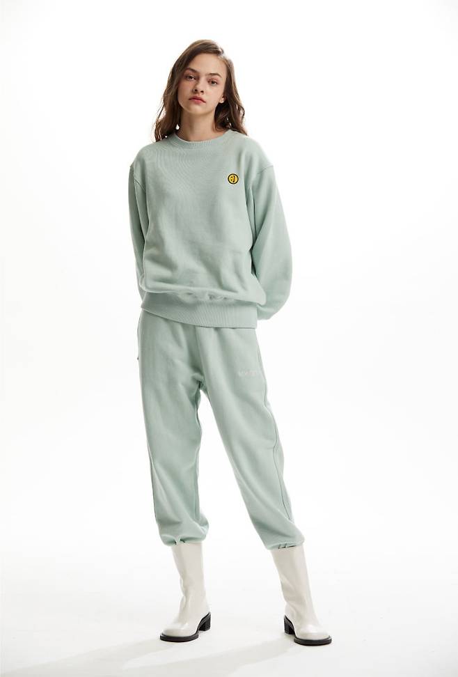 장규리는 민트 컬러의 스웨트 셔츠와 팬츠로 셋업을 스타일링을 선보였습니다.