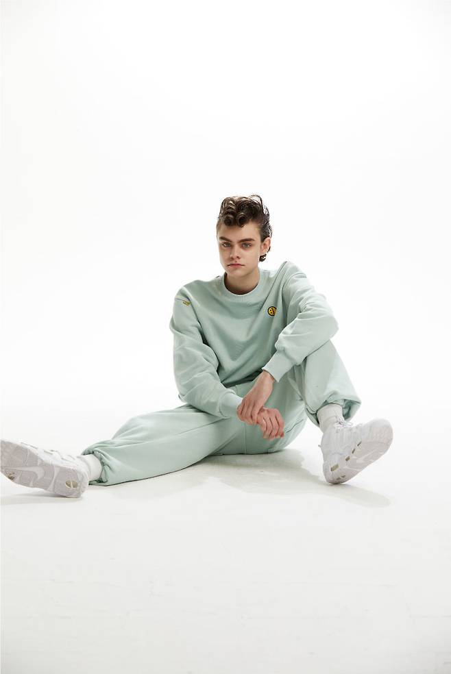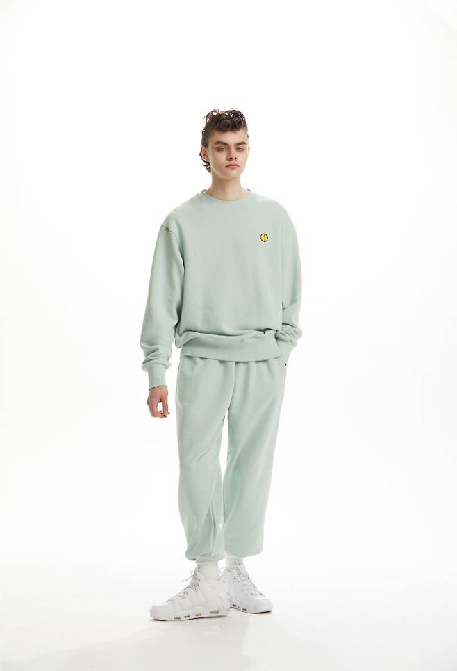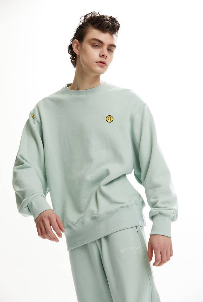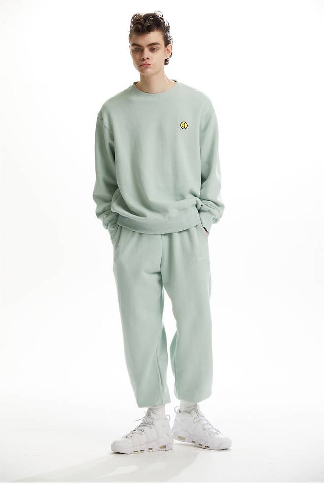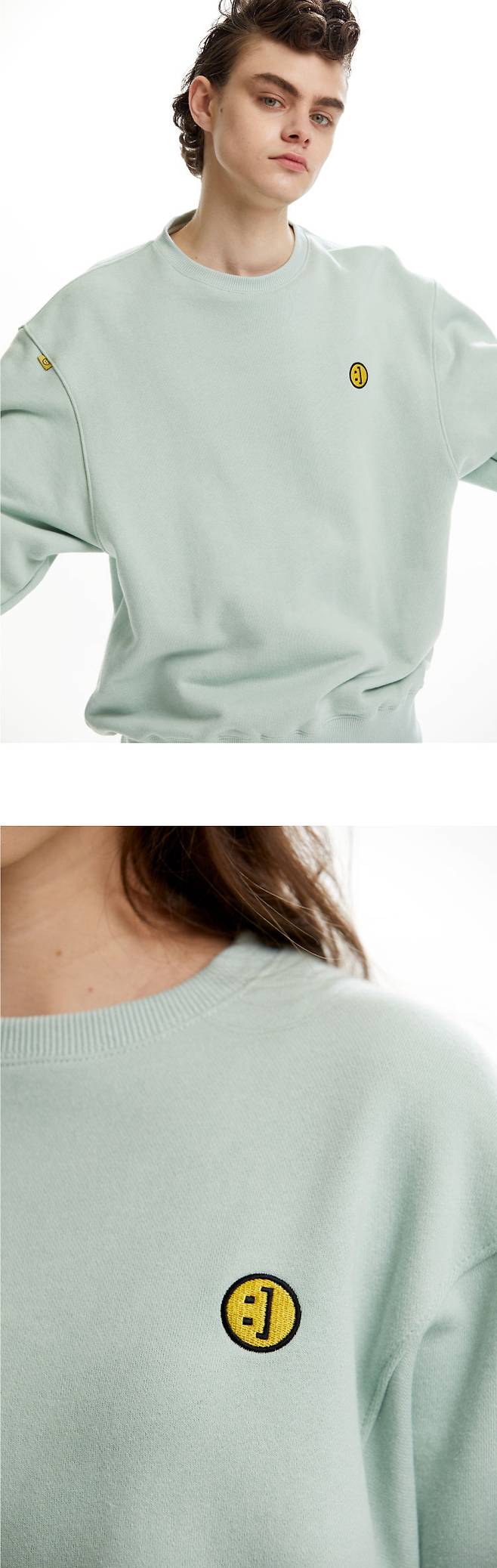 스마일 라인의 여유로운 오버사이즈 핏의 스웨트 셔츠는 전면 왼쪽 가슴에 시그니처 스마일이, 후면 넥 라인 아래에는 브랜드 로고가 자수처리 되어있습니다.