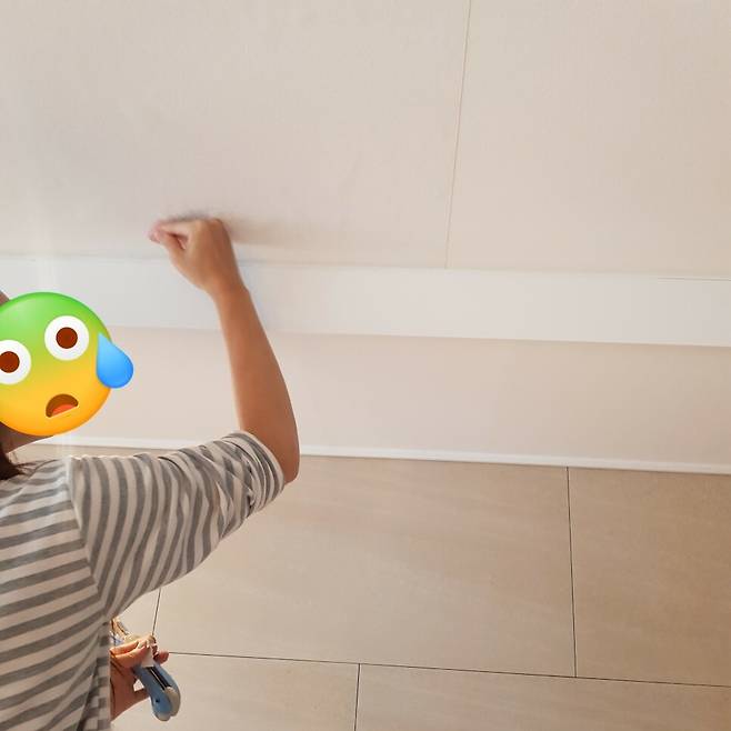저는 천장에 사용했던 도배지 여분이 집에 있었어서, 동일한 도배지 이용해서 부분도배를 셀프로 진행했어요.