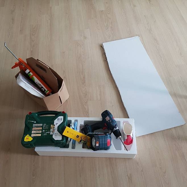 ※ 준비물 : 나무판자 또는 목각, 석고판, 실리콘, 전동드릴, 천장 도배지
