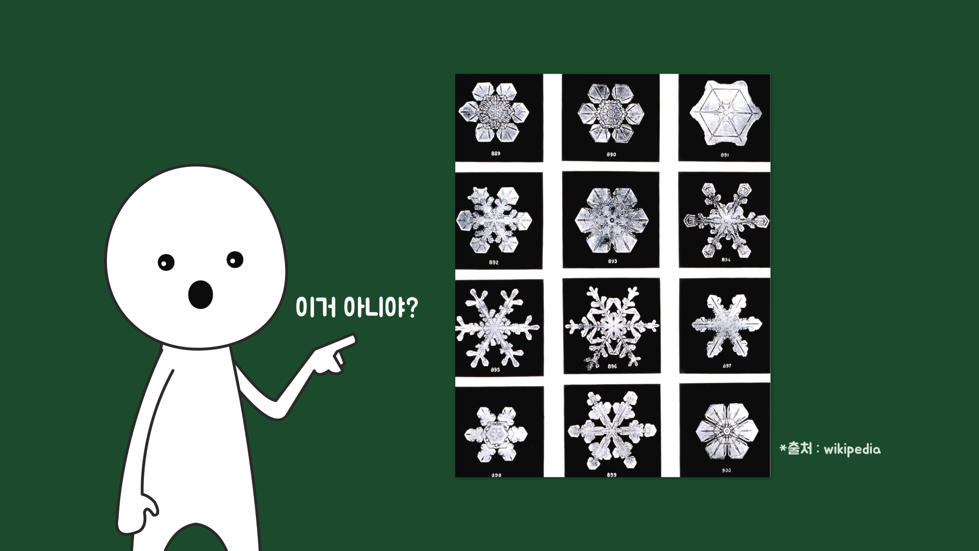 이 소리는 사람이 눈을 밟았을 때 가해지는 압력으로 눈의 입자들이 부딪히면서 나는 소리입니다. 눈을 확대해서 보면 결정체 모양으로 되어 있습니다.