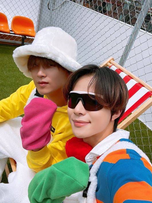 사진 속 NCT 해찬과 정우는 SM엔터테인먼트 선배 그룹 H.O.T.의 히트곡 '캔디' 시절을 회상하고 있는 모습. 두 사람은 무더운 여름에도 불구하고 털옷과 모자, 장갑을 착용하면서 H.O.T.의 '캔디' 의상을 200% 소화했다.