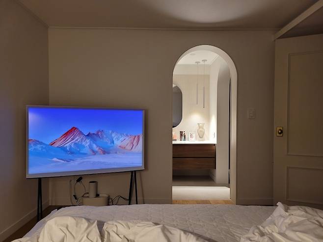 좁은 방 구조상 침대가 파우더룸을 바라보는 방향으로만 배치가 가능했는데 이렇게 배치를 하게 되면 우리 부부에게 중요한 TV를 놓을 데가 없었다. 고민 고민을 하다 생각해 낸 아이디어가 바로 가벽 세우기!