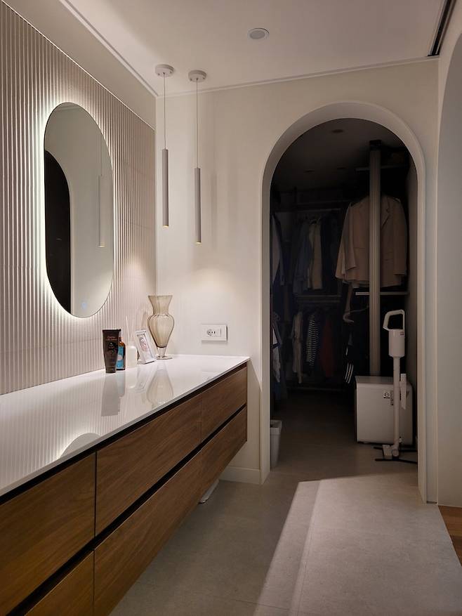 반대쪽에도 아치 형태의 문을 내주어서 드레스룸으로 바로 이동할 수 있어요.