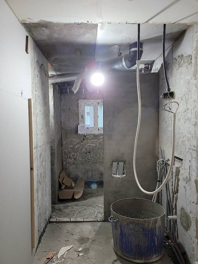벽도 조적으로 변경하여 샤워부스도 생겼어요. 그럼, 반셀프리모델링 어떻게 준비했는지 자세히 소개해볼게요 :)