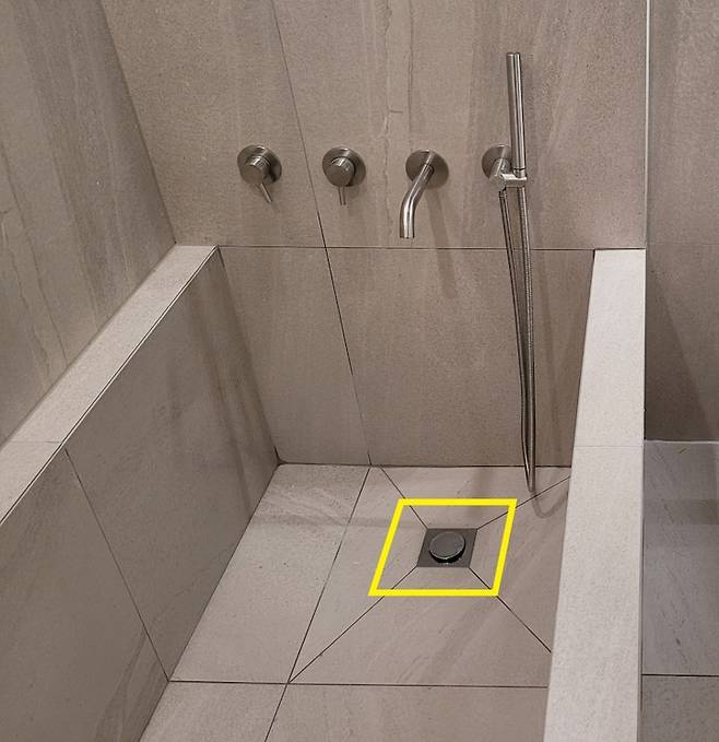 3) 배수구는 최대한 모서리 끝에 설치하기