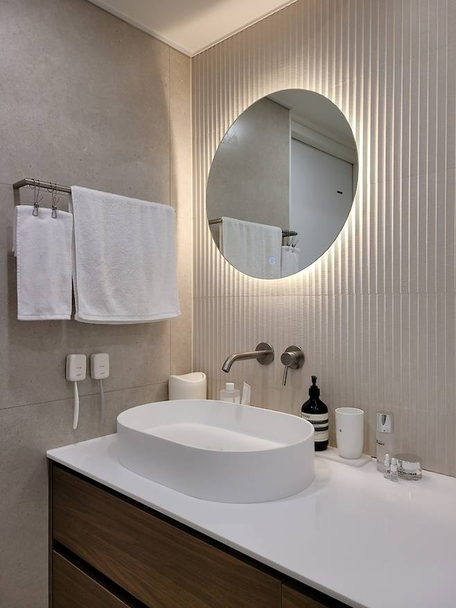 기존에 살던 집에서 어떤 게 가장 불편했고 좋았는지 분석을 많이 하고 인테리어에 반영하는 게 제일 좋은 것 같다. 기존 집에서는 매립형 세면기였는데 정말 안쪽 청소하는 게 얼마나 곤욕인지.