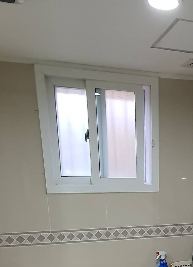 타일 사장님께 정말 감동한 창문 타일 시공. 이 집 욕실에서 가장 마음에 안 들었던 부분은 바로 창문이 왜 천장에 딱!! 붙어있을까? 였다.