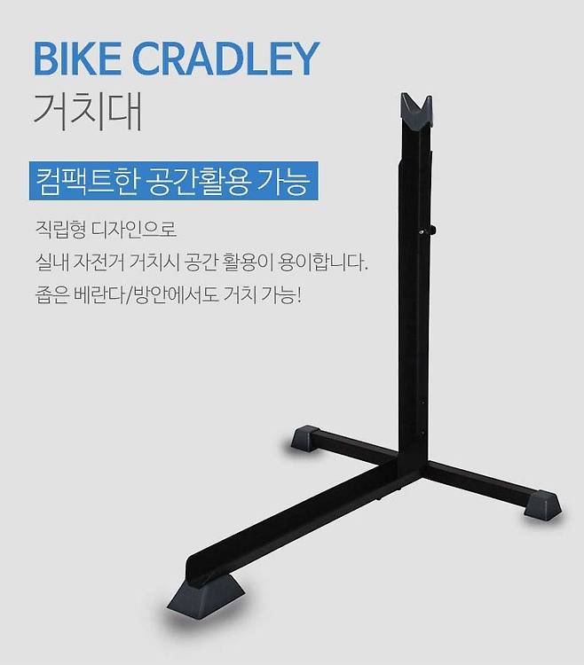 컴팩트한 공간 활용 가능 직립형 디자인으로 실내 자전거 거치시 공간 활용이 용이 합니다. 좁은 베란다 방안에서도 거치 가능!