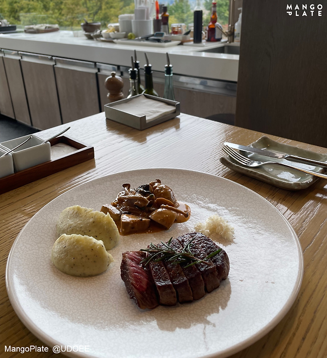 다른 곳과는 다르게 여러가지 코스로 준비되어 있어 가격에 따라, 취향에 따라 고를 수 있는 선택지가 많은 편이에요. 테이블마다 철판이 있어 직접 오셔서 구워주시고 접객이 매우 뛰어나 대접 받고 싶은, 대접하고 싶은 식사가 있다면 이곳을 추천합니다. 인기 코스는 1인 4만원 '이베리코 갈비살 코스'입니다.