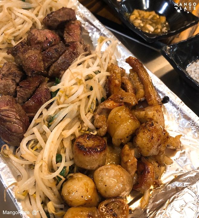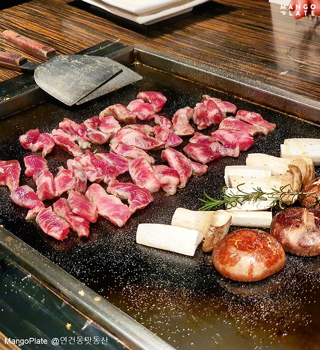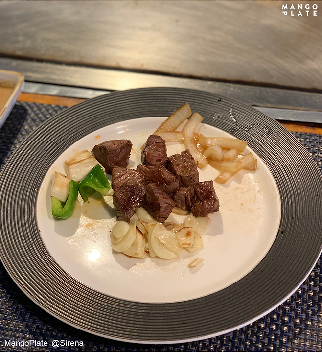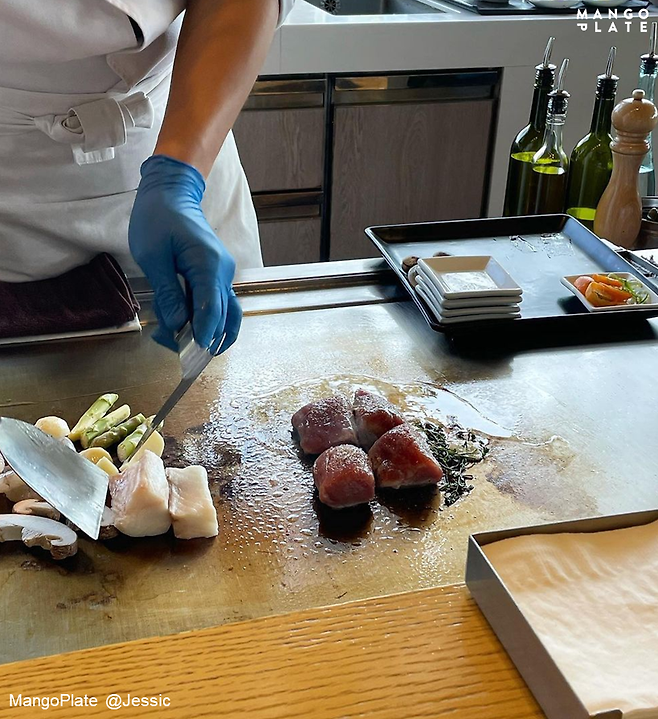 다른 곳과는 다르게 여러가지 코스로 준비되어 있어 가격에 따라, 취향에 따라 고를 수 있는 선택지가 많은 편이에요. 테이블마다 철판이 있어 직접 오셔서 구워주시고 접객이 매우 뛰어나 대접 받고 싶은, 대접하고 싶은 식사가 있다면 이곳을 추천합니다. 인기 코스는 1인 4만원 '이베리코 갈비살 코스'입니다.