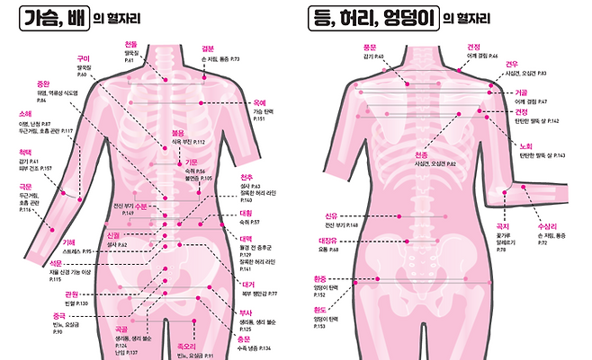 혈자리를 눌러 통증을 느낄 때는 이에 해당하는 내장 기관에 문제가 있다는 신호입니다. 다리의 혈자리를 눌러 요통이 나았다는 사례도 다리와 허리가 경락으로 이어져 있기 때문이죠.
