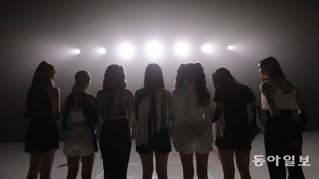 군무 장면을 촬영할 3층 강당으로 멤버 7명과 헤·메·스(헤어·메이크업·스타일리스트) 스태프의 긴 행렬이 이어졌다. 그사이 7인조 걸그룹 트라이비 멤버 소은은 “어떡해요”라며 밑창이 달랑거리는 워커를 들어 보였다.