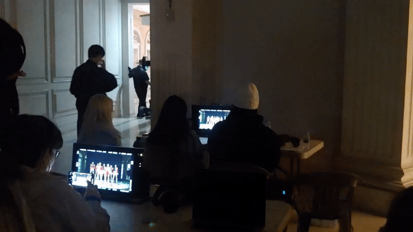 뮤직비디오 촬영 날. 군무 촬영을 앞두고 연습을 하고 있는 멤버들.