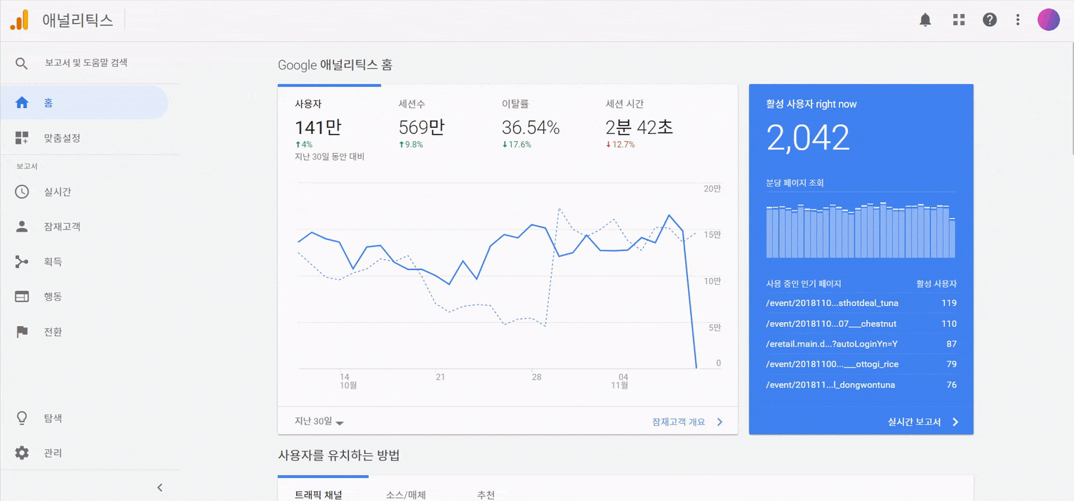 이런 데이터가 있으면, 우리에게 관심있는 사람들을 찾기 수월하겠지? '구글 애널리틱스'는 이런 정보를 알 수 있도록 돕는 서비스야. 구글에서 제공하는 서비스이기 때문에 누구나 쓸 수 있지. 하지만 활용하기 위해서는 데이터를 잘 볼 줄도 알고, 또 우리의 데이터를 잘 모으는 작업도 필요해.
