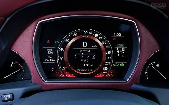 반면 ‘멀티스테이지 하이브리드’는 자동 4단 변속기를 더해 시속 60㎞부터 엔진 힘을 바닥까지 긁어 쓸 수 있다. 그 결과 급가속 때 엔진과 전기 모터의 역할이 거의 대등하다. 제원 상 0→시속 100㎞ 가속 시간은 5.5초. 445마력의 LS 600hL과 같다. 우리가 계측한 결과는 평균 6.53초. 성인 두 명과 촬영 장비를 감안하면 렉서스의 주장을 수긍할 만했다.
