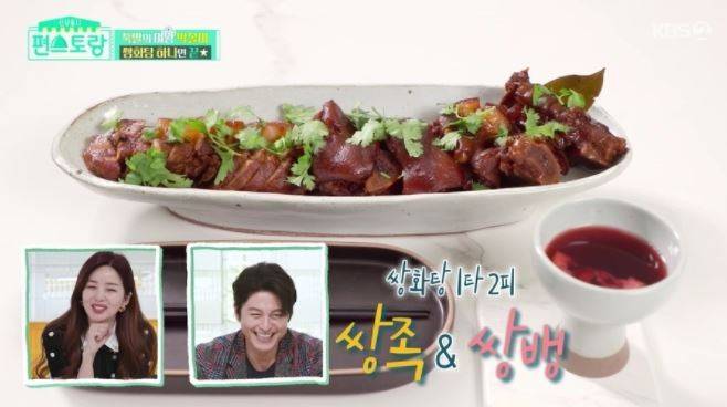 이날 박솔미가 공개한 다양한 레시피 중 가장 눈길을 사로잡은 것은 바로 ‘쌍화탕’을 활용한 쌍족(쌍화탕 족발)과 쌍뱅(쌍화탕 뱅쇼)이다. 평소 족발을 좋아해서 많을 때는 일주일에 4번도 족발을 먹는다는 박솔미는 이날 혼술 타임을 만끽하기 위해 집에서 직접 족발을 만들었다. 이때 박솔미가 꺼낸 비장의 무기가 ‘쌍화탕’이다. 박솔미는 노두유와 쌍화탕으로 고기의 잡내는 잡되, 깊은 맛은 더한 쌍족(쌍화탕 족발)을 만들었다. 또 쌍화탕으로 뱅쇼도 만들어 감탄을 자아냈다.