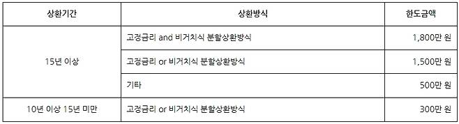 * ’09년 2월 12일부터 1년간 서울지역 외의 미분양주택 또는 신규분양주택을 구입하기 위하여 차입하는 경우 상환기간 5년 이상인 경우 포함