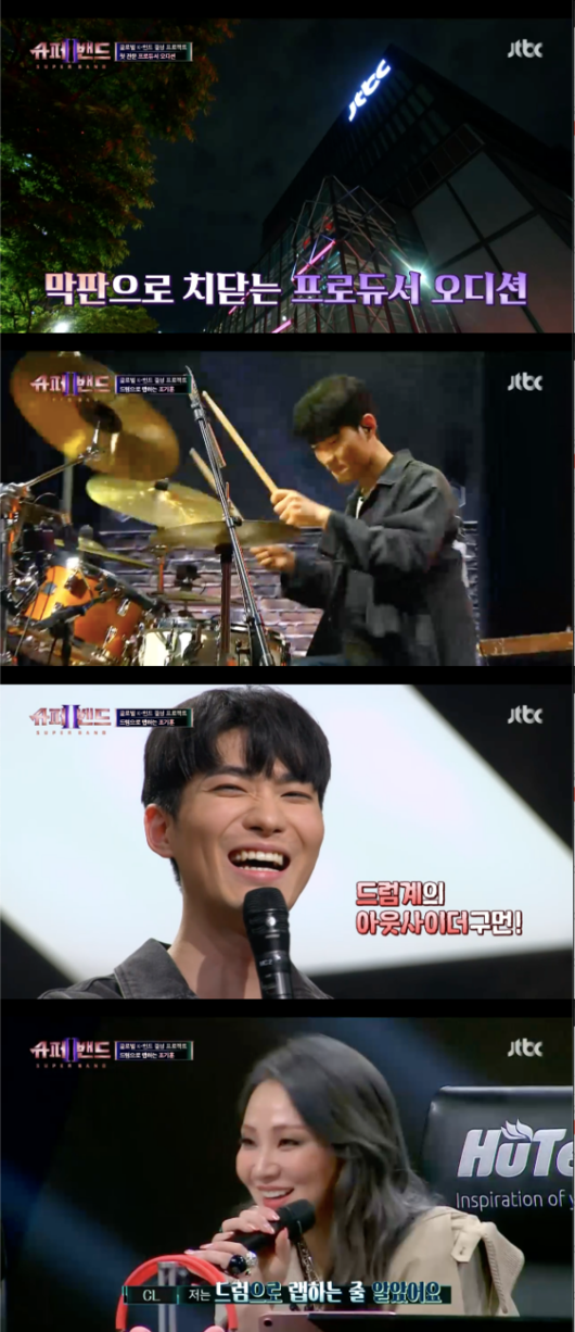 12일 오후 방송된 JTBC ‘슈퍼밴드2’에서는 화려한 드럼 실력으로 모두를 놀라게한 드러머 조기훈이 출연했다.