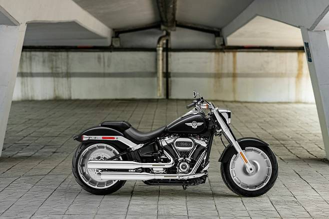 남성미 풀풀 풍기는 팻보이를 더욱 강력하게 만들어주는 밀워키 에이트 114 엔진을 탑재한 팻보이 114. 전통적인 실루엣에 소프테일 패밀리를 대표하는 모델이다. 2021년 팻보이는 기존의 은은한 광택이 돌던 새틴 크롬 파츠들이 모두 거울처럼 반짝이는 크롬으로 대체되었다. 세련미보다는 화려하면서도 레트로 이미지다. 또한 배기라인 중간에 슬릿을 내어 디테일을 더했다. 블랙과 크롬의 조합, 그리고 미 공군 로고를 닮은 연료탱크 배지로 대표되는 이미지는 터프한 팻보이 고유의 것이다. 한덩이의 금속으로 깎여진 거대한 18인치 솔리드 디스크 휠은 그 자체로도 예술품이며 프런트에 어지간한 바이크의 리어타이어 사이즈인 160mm폭을 끼우고 리어는 240mm에 달하는 초광폭 타이어로 감싸 전체적인 존재감을 더한다.