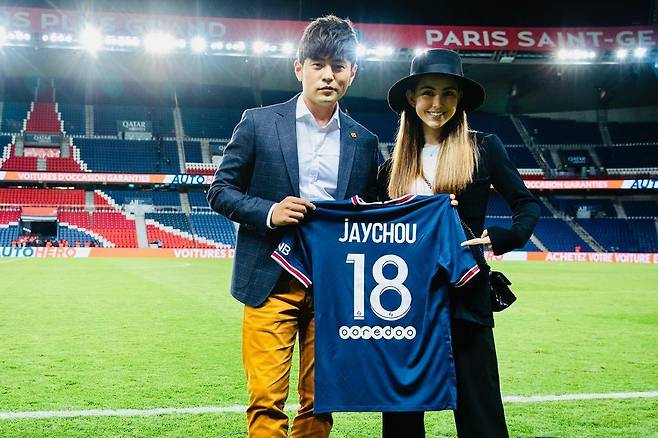 부부 동반 파리 생제르맹 구장을 찾아 자신의 이름이 적힌 유니폼을 선물 받기도 했고,