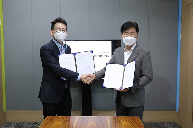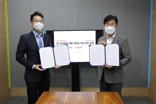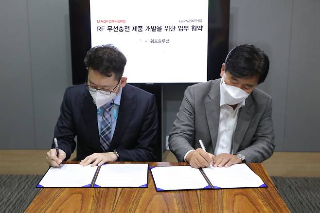 [헤럴드경제=이정환 기자]세계적인 영유아 놀이 프로그램 및 교구 브랜드인 한국짐보리㈜짐월드와 원거리 무선 충전 솔루션 전문업체 ㈜워프솔루션이 29일 ㈜짐월드 본사에서 'RF를 이용한 무선충전 제품개발에 대한 업무협약(MOU)'을 체결했다.