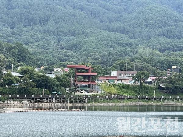 | ▲ 고모리호숫가에 신축 중인 것으로 밝혀진 투썸플레이스 가맹점 건물. 직동리 기존 투썸 가맹점과 2.5km 떨어져 있다. |