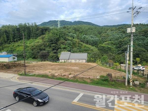 | ▲ 맞은편 카페에서 바라본 스타벅스 부지 직동리 스타벅스 부지 맞은 편 카페에서 바라본 계약된 토지 현장. 스타벅스와 바로 마주할 이 카페의 운명이 궁금하다. |