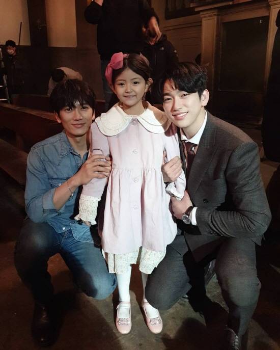 (엑스포츠뉴스 김현정 기자) 배우 지성과 갓세븐 멤버이자 배우 진영이 아역 배우 김수하와 친근한 분위기를 드러냈다.