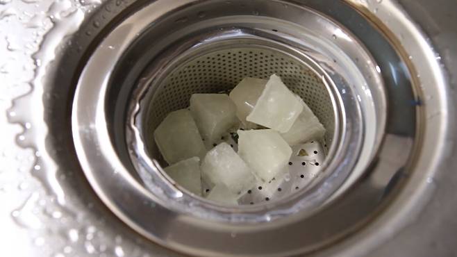 2. 식초 얼음을 만들어서 배수구에 넣어 놓으세요. (식초 1 : 물 1의 비율로 섞어서 얼려준다.)