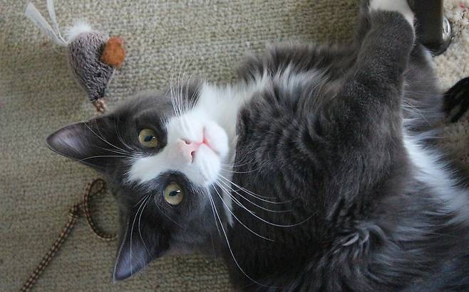 고양이가 놀 때 너무 흥분하면 털을 세울 수도 있어요. 다 큰 성묘도 이런 반응을 보이지만 특히 어린 고양이가 놀 때 자주 볼 수 있는 모습입니다.
