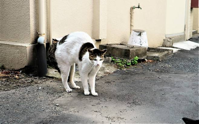 고양이는 화가 나면 털을 세워요. 화가 난 상대와 맞서 싸우려고 할 때 털을 세워 자신의 몸을 크게 부풀려 위협적으로 보이게 하려는 거죠.