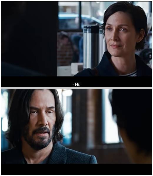 한편 ‘매트릭스4’는 ‘매트릭스’ 1편과 이어지는 영화로 알려졌다. 파란약, 빨간약이 다시 등장했고, 토끼 문신도 나왔다. 배경음악 역시 제퍼스 에어플레인의 ‘화이트 래빗’이다. 네오와 트리니티는 처음에 서로 모르는 사이로 등장하는데, 예고편 마지막에 이르러서는 빌딩옥상에서 함께 뛰어내린다. 모피어스 캐릭터는 로렌스 피시번이 아니라 ‘아쿠아맨’의 야히아 압둘 마틴 2세가 연기한다.