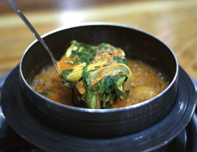 전북 남원시 요천 앞에는 추어탕 거리가 있습니다. 3대째 이어온 원조3대할매추어탕이 유명한데요. 통통한 미꾸라지를 삶고 갈아 여러 번 뼈를 거른 후, 그 육수에 된장을 넣어요. 여기에 고랭지 무청 시래기를 넣고 팔팔 끓인 걸쭉한 국물이 매력입니다. 직접 담근 된장에 들깻가루, 매운 고추를 넣어 진하면서도 시원하죠. 한 뚝배기 비우고 나면 과연 몸이 팔딱팔딱 살아나는 느낌입니다.