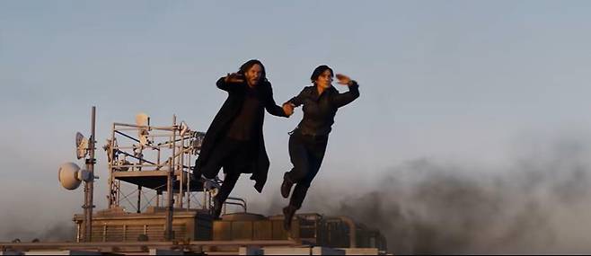 트리니티와 함께 빌딩 위를 날아오를 정도로 더욱 과감한 액션을 선보이며, 매트릭스 세계에서 다시 깨어난 그의 활약을 기대하게 한다.